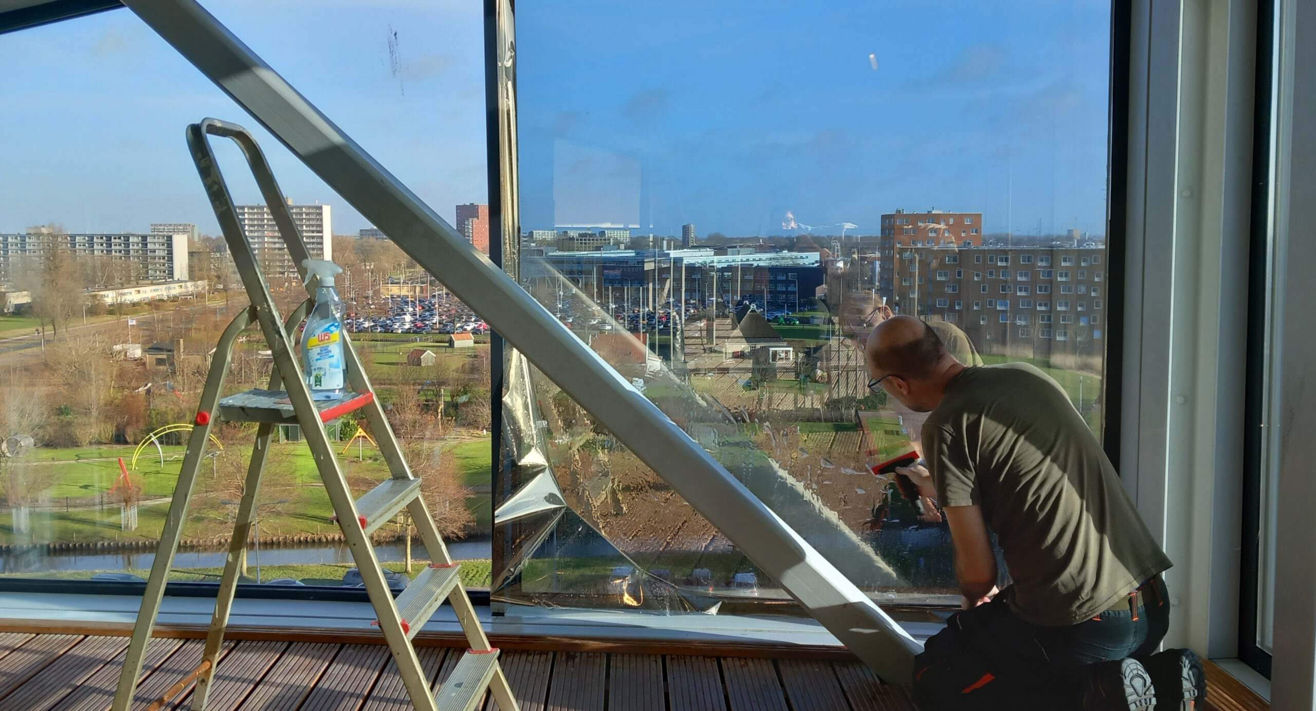 - Vermindering van schittering: De folie vermindert verblinding door direct zonlicht, waardoor het comfort en de veiligheid in uw huis of kantoor worden verbeterd, vooral in ruimtes met veel ramen.